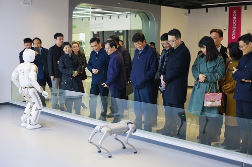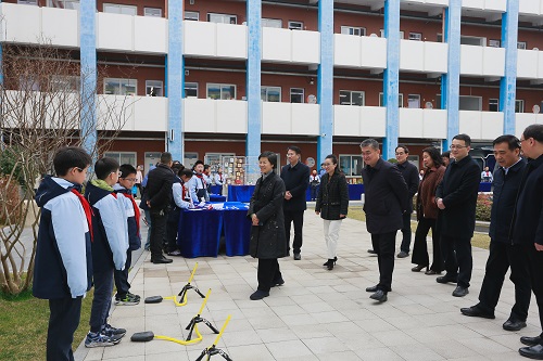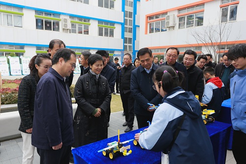 3月7日下午,江苏省教育厅副厅长、一级巡视员顾月华和省基础教育工作会议参会人员一行来到无锡市尚贤万科小学,深入调研学校工程教育实施情况。市教育局局长宋新春,市教育局基教处处长胡正良,经开区教育局党委书记、局长杜黎明,市教科院副院长胡晓军,经开区教育局副局长钱柯等陪同调研。(1)