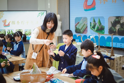 在本次精彩纷呈的教学活动中,6位教师基于2024版一年级新教材,以单元整合、跨学科融合的方式展开教学。和畅实验小学杨秋婷老师执教的《美美的新花布》与江南实验小学许逸老师的《巧手做新衣》,以《我的新衣服》单元为主题,引导学生感受传统纹样之美,体验服装设计的乐趣;东绛实验学校小学部虞斓老师的《粽儿香满堂》和融成观顺实验小学张诗老师的《“五毒”祈吉祥》,通过《过端午》单元教学,将民俗文化与艺术创作巧妙结合;尚贤万科小学赵妮老师的《像什么》以趣味联想激发学生想象力,丁孟月老师则以水墨游戏《练笔成图》带领学生感受中国传统笔墨韵味。