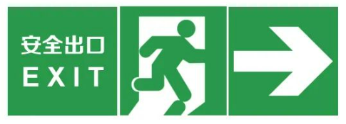●指示安全出口在前方,这种标志要面向疏散方向设置,一般悬挂在大厅、疏散通道上方等。